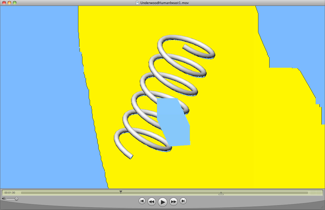 This video was created by analyzing the stems in Max and using this data to transform 3d shapes. I then exported about ten different video files, recursively layering and keying the previous proccessed file to achieve the final image.