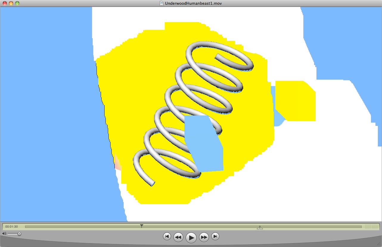 This video was created by analyzing the stems in Max and using this data to transform 3d shapes. I then exported about ten different video files, recursively layering and keying the previous proccessed file to achieve the final image.